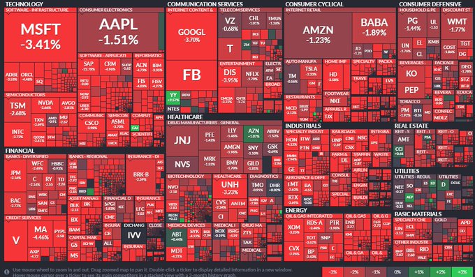 行情数据显示,在周一的美国市场上,几乎所有股票都出现下跌,因为卷土重来的新冠疫情以及一家大型软件公司发出的营收警告,令乐观情绪已达到多年来最高水平的市场参与者感到震惊。