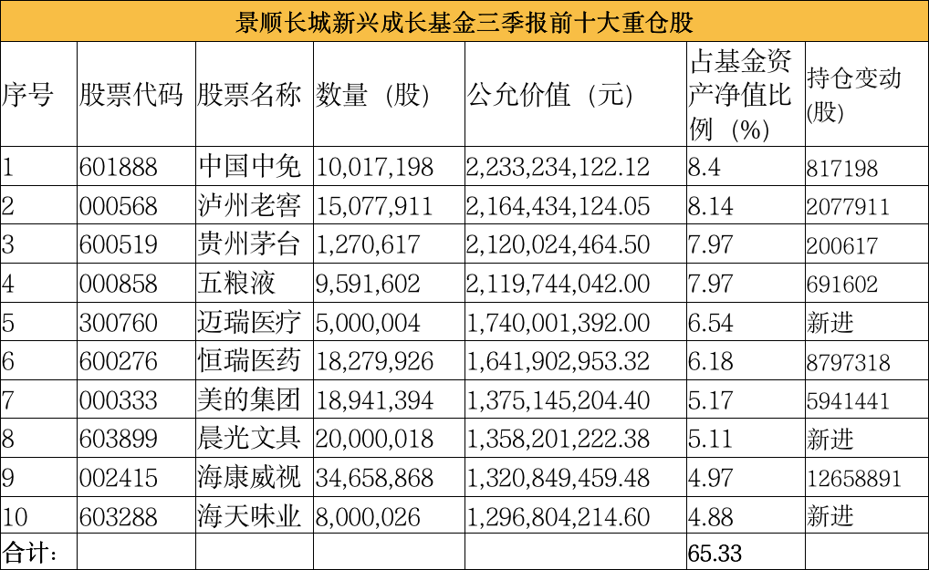 融通基金副总经理兼权益投资总监邹曦三季度前十大重仓股保持稳定,三一重工、恒立液压、立讯精密继续坐稳其前十大重仓股,新进个股中有中国中免、歌尔股份;长春高新、万达信息退出前十大重仓股。