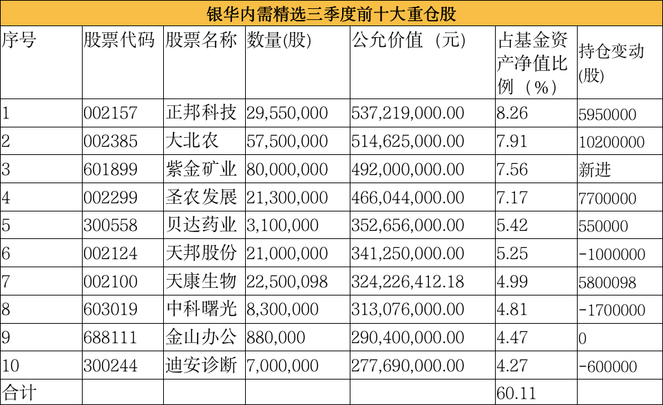 银华内需精选刘辉:继续维持农业、科技、医药的核心配置,并适当配置了金融、有色、环保等低估值品种。