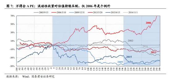 不仅如此,流动性收紧还对估值形成了持续性的压制,同样只有2006年“幸免于难”。