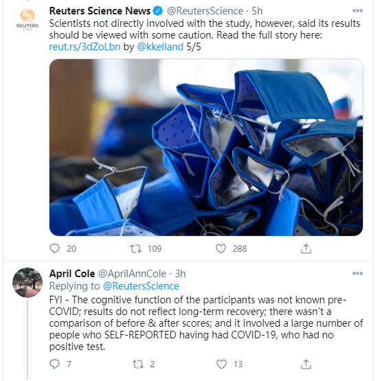 更有趣的是,还有人宣称这项调查揭露了一些政客为什么想搞“群体免疫”的真实原因:把大家的脑子都搞坏了,就更好操控和忽悠民意了。