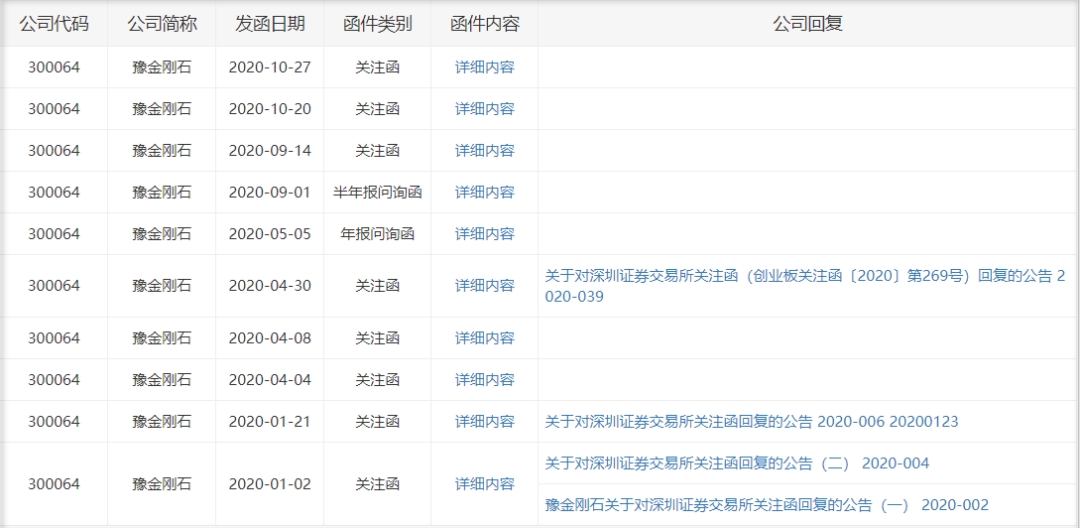 事实上,豫金刚石至今未回复的函件只是众多监管函件中的一小部分。