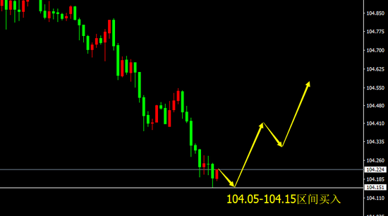 104.05-104.15区间买入,止损20点,目标104.35、104.55、104.75。