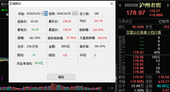 促使泸州老窖股价强势大涨的背后源于公司公布了一份亮眼的三季报。财报显示,2020 年前三季度公司实现营业收入115.99亿元,同比增加1.06%;实现归母净利润48.15亿元,同比增加26.88%。2020年第三季度,公司营业收入39.64亿元,同比增长14.45%;归母净利润15.95亿元,同比增长52.55%。