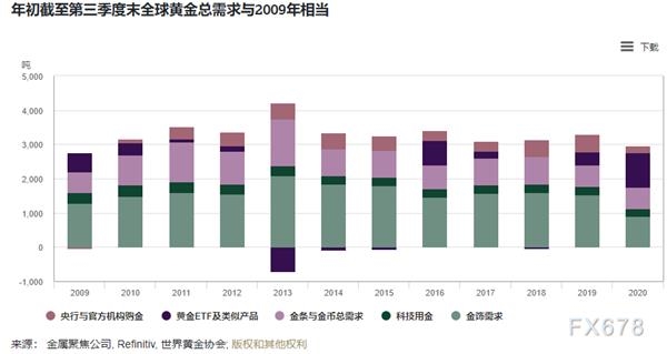 第三季度全球黄金投资增长强劲,在一定程度上弥补了其他黄金需求领域因新冠疫情导致的疲软。
