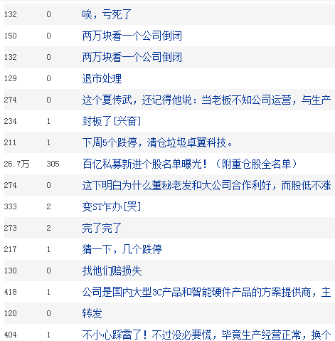 即便卓翼科技再三声明,实控人被抓不会影响公司正常经营,但这也难以阻挡恐慌情绪的蔓延,公司实控人被抓成为该股股价跌停的直接导火索,该股股吧也热闹了起来,不少股民纷纷哀叹巨亏,更有股民表示买到了“地雷股,一夜回到解放前”。