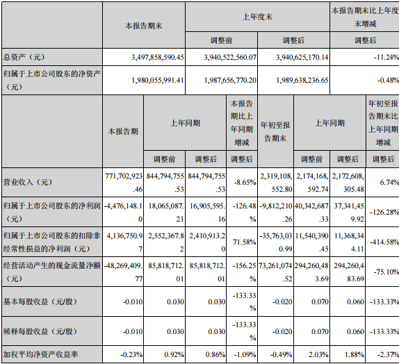 10月13日晚,卓翼科技发布的前三季度业绩预告显示,今年1月—9月份,预计业绩为亏损,归属于上市公司股东的净利润亏损范围在600万—1000 万元之间。而根据10月27日披露的三季报显示,归属于上市公司股东的净利润亏损额为981.2万元,扣非净利润亏损更是达到3576万元。卓翼科技三季报财务指标如下图: