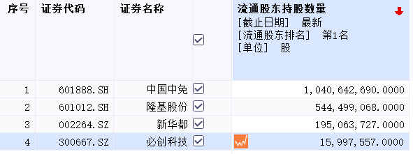 根据同花顺数据显示,截至三季末,陈发树出现在了4家上市公司的十大流通股股东名单上,分别是中国中免,隆基股份,新华都以及必创科技。