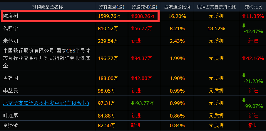 有意思的是,在截至三季度末的十大流通股名单中,多位股东减持。除了刘格崧管理的广发科技先锋减仓了1400多万股,以及北向资金减仓2400多万股,还有“最牛散户”陈发树二次减仓3740万股。