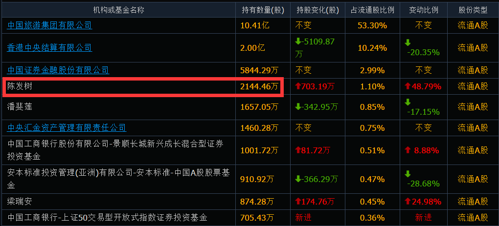 除了精准买入隆基股份,陈发树还精准出击了中国中免。