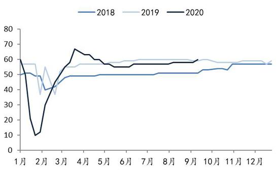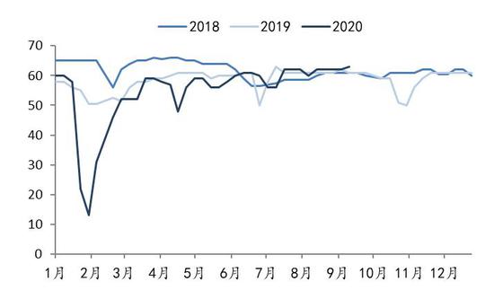图9:PP开工率(%)