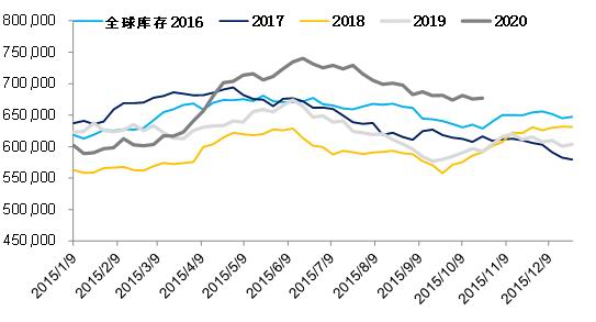 图1:全球原油库存(千桶)