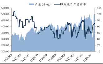 PP开工率均小幅下滑但仍在高位,截至30日,国内聚丙烯装置开工负荷为88.53%,较上周的89.89%减少1.36个百分点。本周新增大连恒力二期二线、宝来石化一线、齐鲁石化以及中沙天津等PP装置停车检修。总体来看,本周装置产量损失量有所增加,使得开工负荷略有走低。检修高峰期过后,周度产能损失量变动有限。本周国内聚丙烯装置产量损失量约6.65万吨,上周的产量损失量在5.86万吨,周环比增加约13%,下周暂无听闻计划开车及停车检修装置消息。