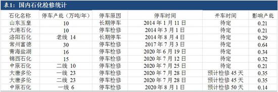 表1:国内石化检修统计