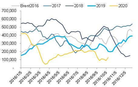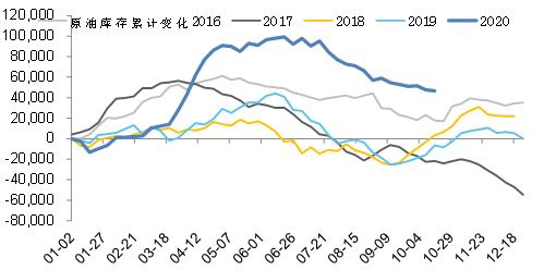 图2:美国原油库存累计变化(千桶)
