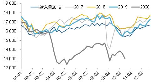 图5:炼厂原油输入量(千桶日)