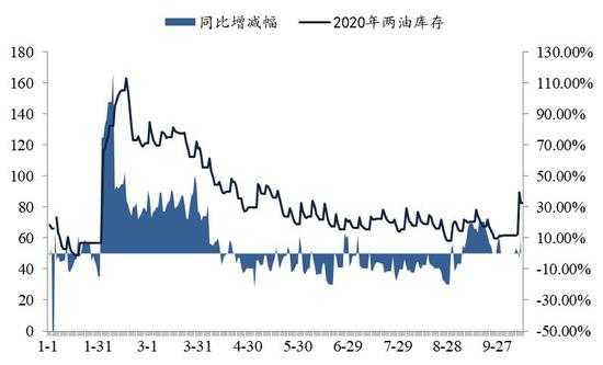 图12:两油库存同比增减幅(%)