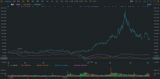 此外,研发和销售费用也大幅增长,前三季度研发费用为1.54亿元,同比增长262%,销售费用为6.09亿元,同比增长90.24%。随之,公司股价也从3月初的29.44元"股一路暴涨到8月份的91.78元|股,迎来高光时刻。