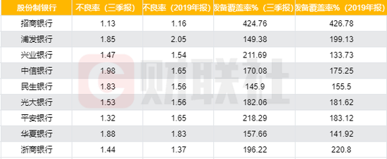 各家股份制银行三季报显示,不良率均差异较大,5家银行在1.5%左右以及更低,4家银行在1.9%左右。其中招商银行不良率最低为1.13%,中信银行不良率最高达到1.98%。