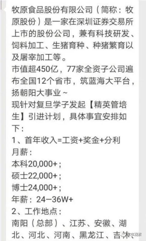 另外,牧原股份(002714)的一份校招启事曾在网上广泛传播。