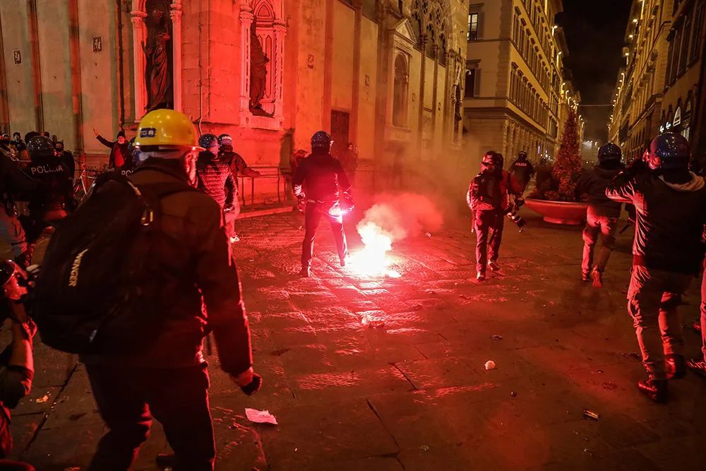 而意大利政府于10月26日宣布防疫新规之后,首都罗马以及那不勒斯、佛罗伦萨、米兰、都灵等大城市陆续爆发抗议示威。据意大利当地媒体报道,佛罗伦萨当地时间30日晚爆发了至少有上百人参与的抗议活动,当地派出防暴警察阻止和驱散人群并与示威人群发生了冲突,抗议者高呼着“自由”并向防暴警察投掷照明弹、玻璃瓶和燃烧瓶。意大利总理孔特称此次抗议是“超现实、可怕和痛苦的夜晚”,佛罗伦萨市长达里奥·纳尔代拉则称他“从未见过这样的情况”。