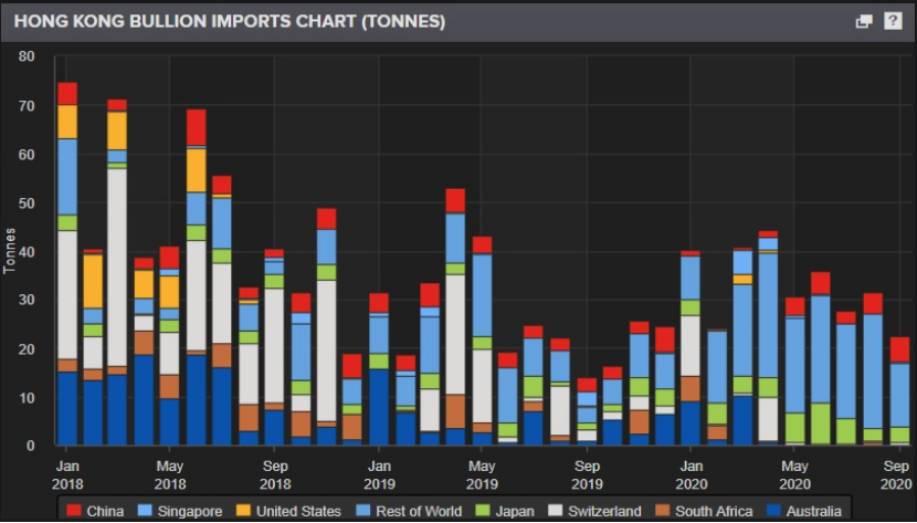 阿联酋仍是香港最大的金条供应国,但其市场份额持续下降,9月降至24%,而8月为27%,7月为37%。