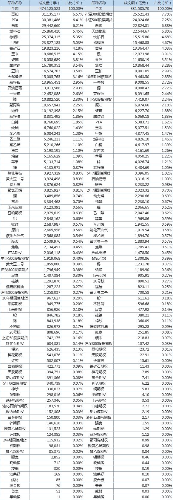 原标题:10月期市成交:豆粕霸气登顶 短纤一战成名