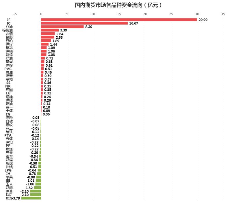 文华财经(编辑整理 那娜)--美国大选结果即将揭晓,市场资金选择进入相对安全的领域,豆油引领油脂涨势,独得8.2亿资金,棕榈油不遑多让,笑纳3.39亿资金。昨日大涨的焦炭、铁矿石均遭资金抛弃,商品市场大多品种资金流动平稳。