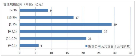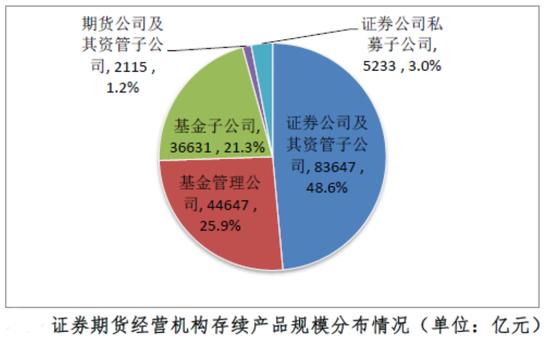 从存续产品的投资类型看,固定收益类产品数量和规模均占据四类产品最大比例,混合类次之,商品及金融衍生品类产品数量和规模相对较小。此外,证券期货经营机构管理私募资管业务规模分布情况方面,截至2020年9月底,期货公司及其资管子公司平均管理私募资管业务规模20亿元,管理规模中位数2亿元。