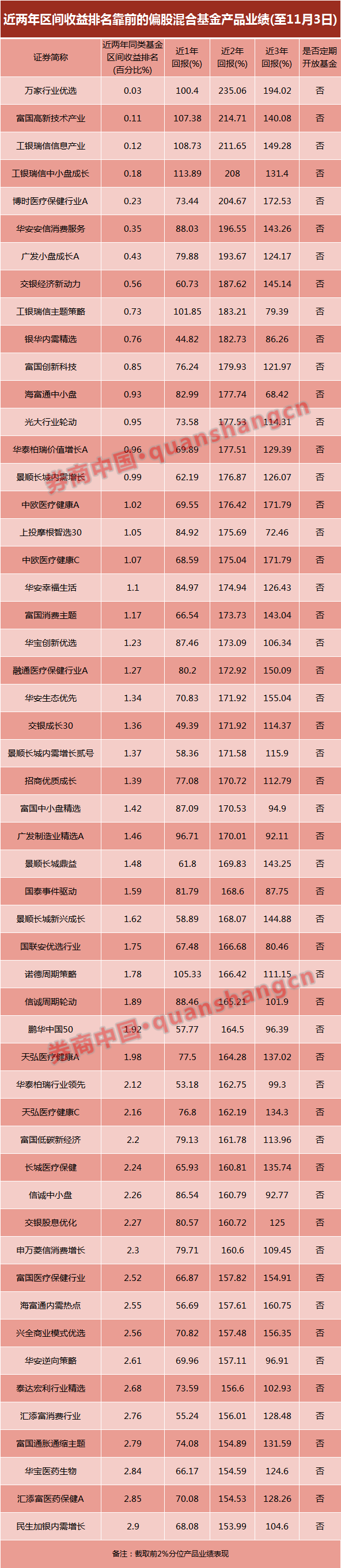 换句话说,在550只存续期超3年的优质偏股混合(开放型/封闭型)基金产品中,545只产品的近2年回报率高于1年和3年持有回报,占比超过99%。
