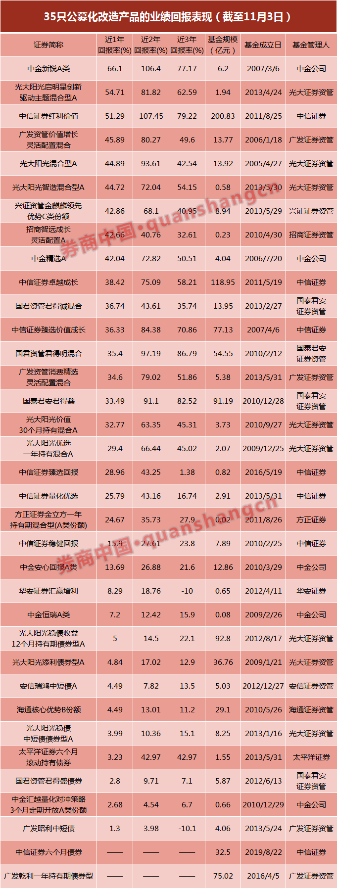比如,就以中信证券红利价值来看,近2年的回报率高达107.45%,近1年回报率为51.29%,近3年的回报率为79.22%;中金新锐A类产品近2年的回报率高达106.40%,但近1年回报率为66.10%和77.17%;国泰君安君得明混合产品近2年的回报率为97.19%,近1年的回报率为35.40%,近3年回报率为86.79%。