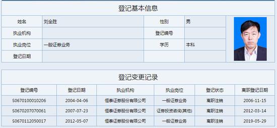 公开信息显示,刘全胜也是一员出身恒泰证券的老将。早年曾在恒泰证券的前身内蒙古证券任职。2009年,刘全胜担任恒泰证券经纪业务管理总部总经理;2011年12月至2016年5月,担任恒泰证券总裁助理;2016年5月至2019年5月,担任恒泰证券副总裁,负责互联网金融部、机构交易部相关工作。