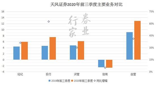 在主要业务方面,天风证券经纪、投行和资管业务规模和收入均有不同程度的增长,自营业务增幅最为明显。