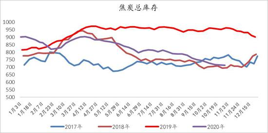 焦炭总库存(包括钢厂、焦化厂及港口库存)维持下降态势,库存拐点未至前不认为供需矛盾有明显的缓解。