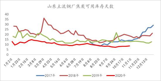 以山东主流钢厂为代表,焦炭可用天数维持低位,后续仍有补库需求。