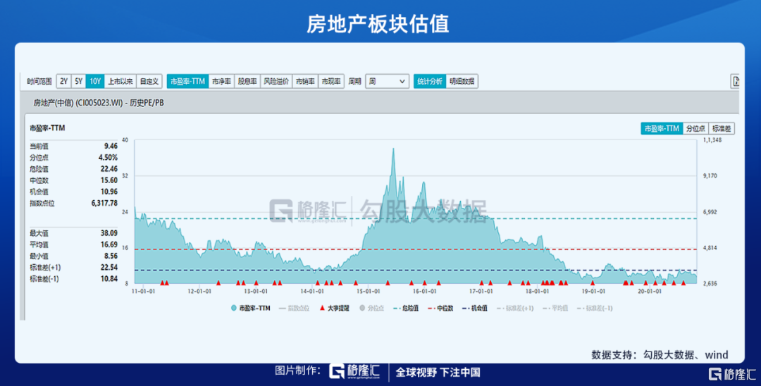 同时大资金配置仓位较低,机构有动力加大配置力度。2020年三季度末,房地产板块基金持仓总市值是993亿元,环比增长6%;地产板块持仓比例占股票投资市值的2.4%,持仓比例创2013年以来的新低。