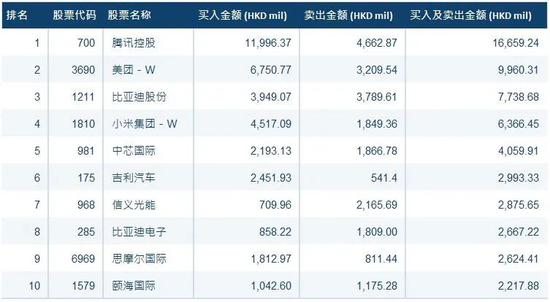 港股通(深)十大成交活跃股