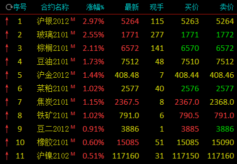 热点栏目11月6日,国内期市开盘,沪银涨近3%,玻璃、棕榈油涨逾2%。
