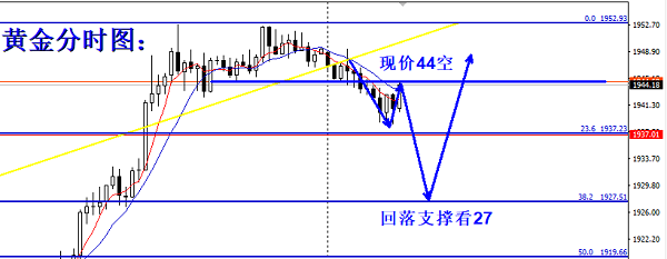 黄金激进者现价1944~1945轻仓空,防守1948,目标1927~1925。
