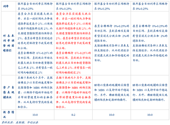 此次议息会议未作出任何政策调整:美联储维持联邦基金利率0%-0.25%不变,维持超额存款准备金利率0.1%不变,维持隔夜逆回购利率0%不变,维持当前资产购买速度,符合市场预期。此次会议获得委员会成员一致通过。