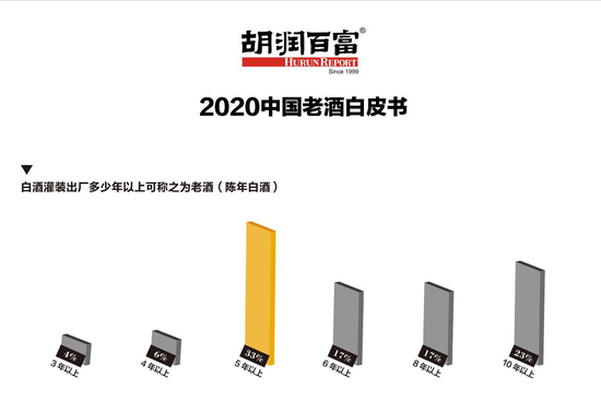 陈年白酒是指早年间生产的、现在流通的“瓶储”老酒。高净值饮酒人群要求成品白酒贮存年份在10年以上方可称之为陈年白酒(老酒)的比例为23%,认可白酒成品贮存年份在5年左右(4年-6年)也可被称之为老酒的比例达56%。