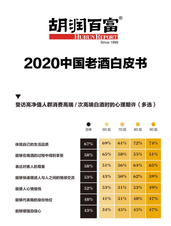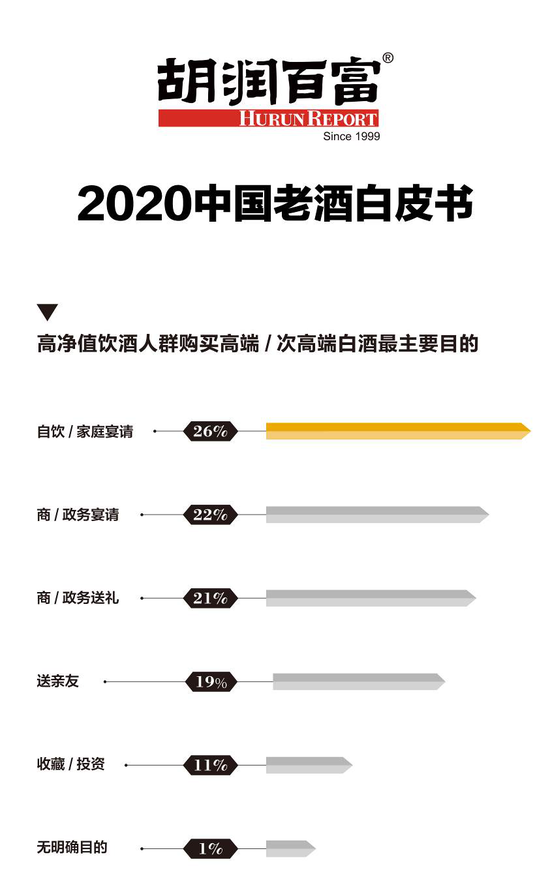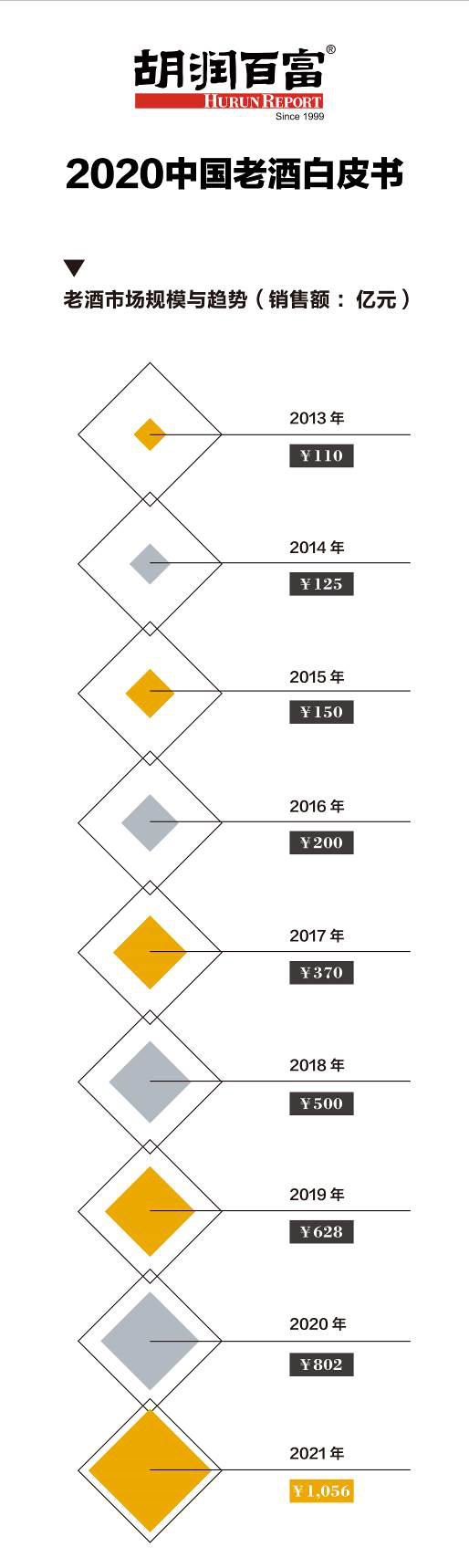 11月6日,胡润研究院发布《2020中国老酒白皮书》(Aged Baijiu Report 2020)。据介绍,这本48页的白皮书深入分析了中国白酒行业的现状、中国高净值人群白酒消费特征与老酒消费趋势、老酒定义与价值内涵,以及老酒市场的展望。