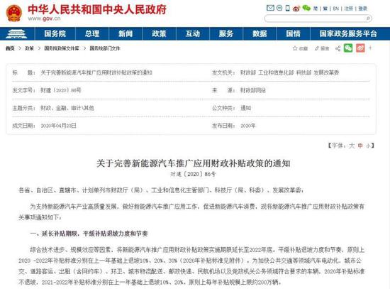 购买新能源车的补贴也是同理。根据国家财政部、工业和信息化部、科技部、发展改革委2020年4月23日发布的《关于完善新能源汽车推广应用财政补贴政策的通知》,“综合技术进步、规模效应等因素,将新能源汽车推广应用财政补贴政策实施期限延长至2022年底。平缓补贴退坡力度和节奏,原则上2020 -2022年补贴标准分别在上一年基础上退坡10%、20%、30%(2020年补贴标准见附件)。”也就是说,至少在2022年年底前,购买新能源车符合技术要求的均可以享受到补贴。