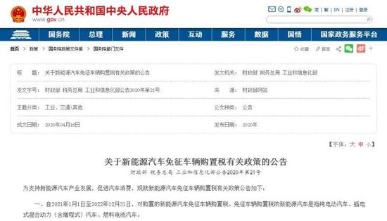 首先,新能源车免征购置税是国家政策,并非是上海的地方政策。根据今年4月16日国家财政部、税务总局、工业和信息化部发布的2020年第21号《关于新能源汽车免征车辆购置税有关政策的公告》,“自2021年1月1日至2022年12月31日,对购置的新能源汽车免征车辆购置税。”“免征车辆购置税的新能源汽车,通过工业和信息化部、税务总局发布《免征车辆购置税的新能源汽车车型目录》(以下简称《目录》)实施管理。”“本公告自2021年1月1日起施行。2020年12月31日前已列入《目录》的新能源汽车免征车辆购置税政策继续有效。”根据这则公告,新能源车购置税免征政策至少在2022年12月31日前均不会有变化。上海来发布地方政策取消购置税免征,这显然是不可能发生的事。