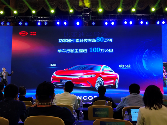 据他介绍,目前比亚迪半导体的功率器件累计装车超80万辆,单车行驶里程超100万公里。“当下旺销的‘汉’车型前驱就是IGBT,后驱是SiC(MOSFET)。“陈刚透露。