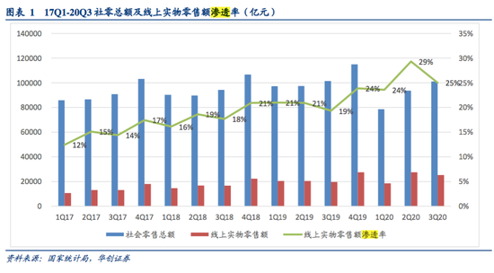 在本次“双11”之前,根据国家统计局数据,在“618”的大促销影响下,今年二季度整体网上实物零售额占总社零额度占比达到历史新高的29%。也就是说,电商的份额从2%到20%花了10年,但从20%到接近30%,只花了几个月。