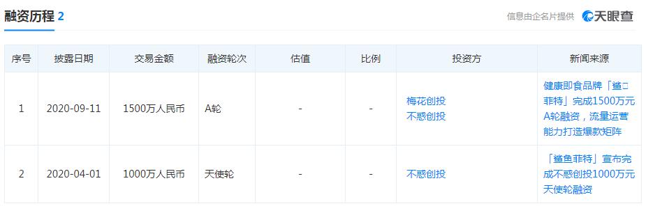 鲨鱼菲特半年内先后完成了天使轮、A轮融资。来源:天眼查