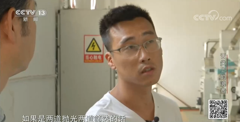 湖州市白兔粮油董事长 邱若飞:就是最后那一道环节。就是把米表层全部加工成白粉了,刚才你也看到了,全部变成白粉了。这样子一个坏处在哪里呢?损耗更大,电耗又更大,就这个情况。