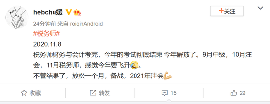 也有微博网友表示,2020年的考试彻底结束,接下来备战2021年注会。