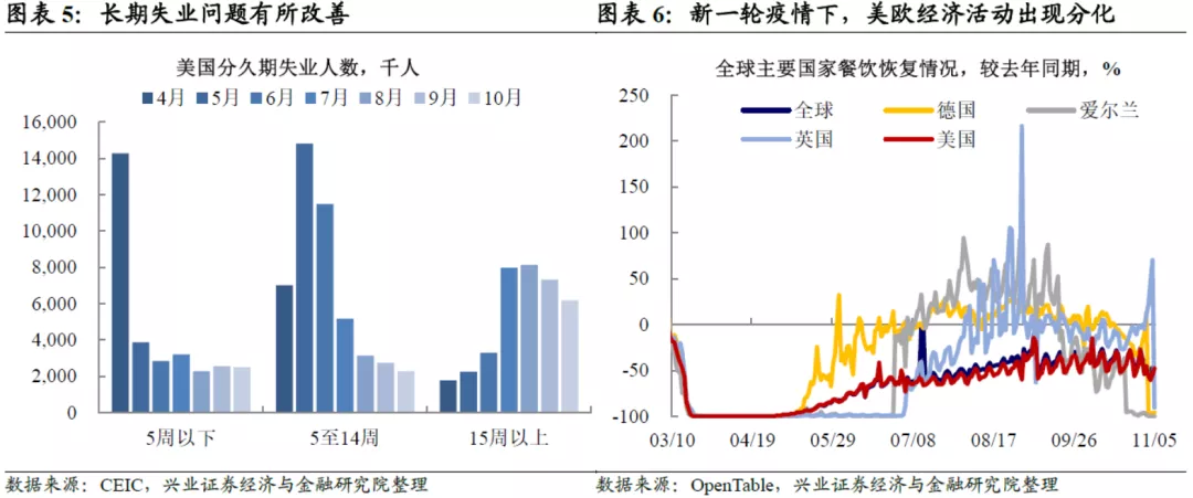 就业恢复仍有差距+货币宽松效用递减,大选后财政刺激或是政策重心。整体来看,当前美国就业市场距完全恢复仍有较大差距,而货币宽松效用边际递减,因此财政刺激的实施或是大选结果落地后的首要焦点。